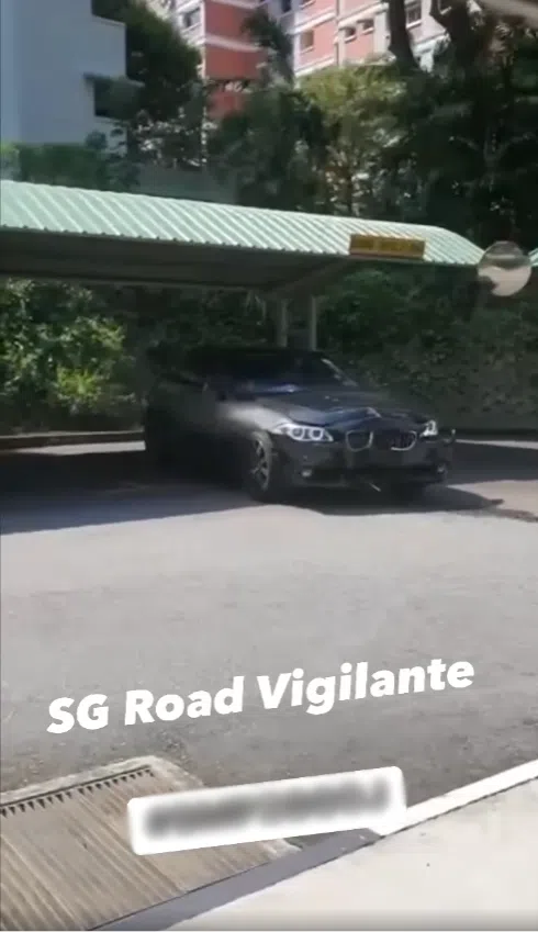 A video shared in Facebook group SG Road Vigilante on Saturday shows a black BMW with a badly dented front bumper in the condominium’s carpark, and smoke wafting from the bonnet.
