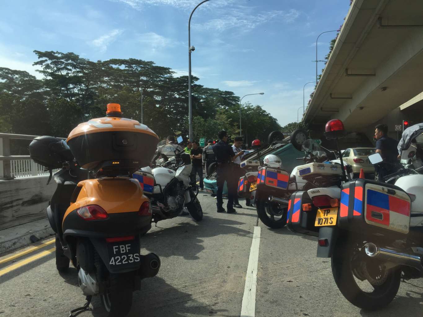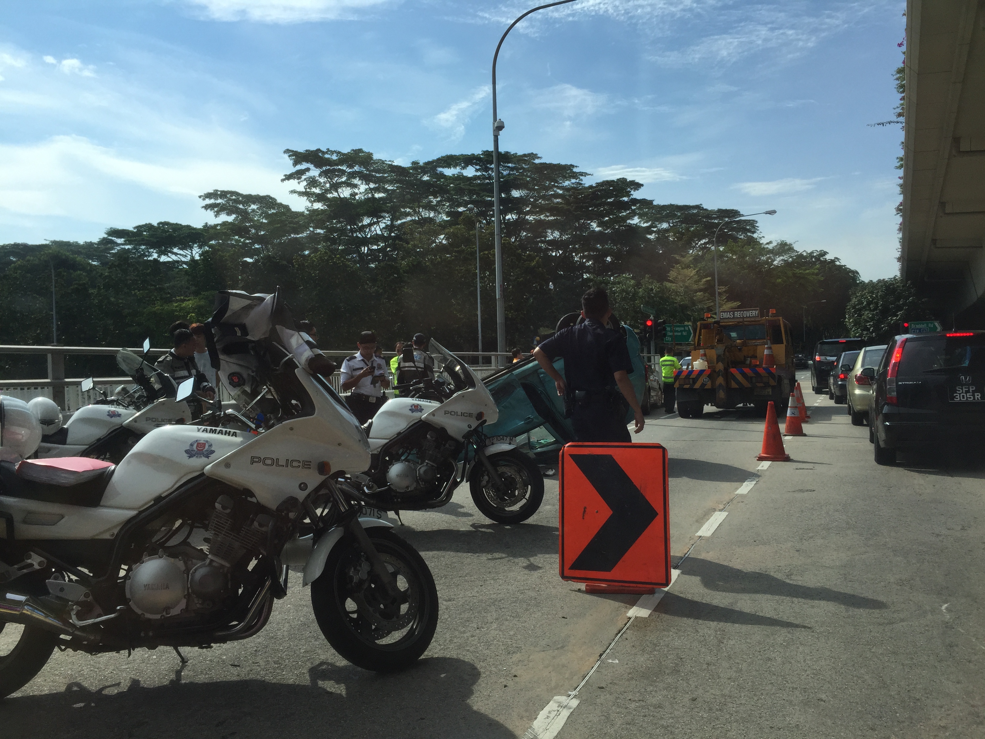 According to an eyewitness at the scene, several police motorcycles, police car and a towing truck were spotted occupying two left-most lanes of the thoroughfare after the accident, which caused some congestion.