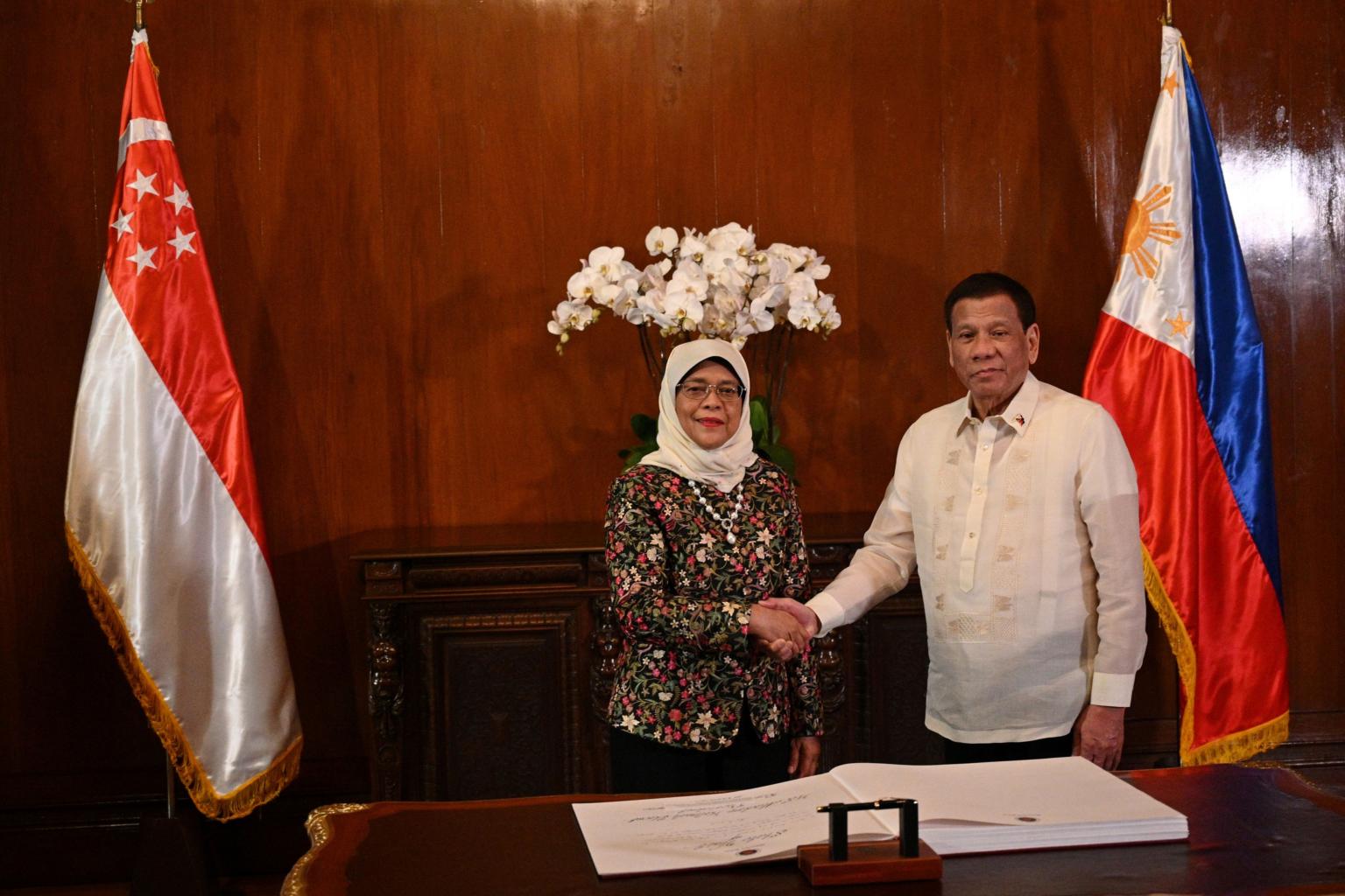 The agreements were exchanged at the Malacanang Palace and witnessed by President Halimah Yacob and Philippine President Rodrigo Duterte.