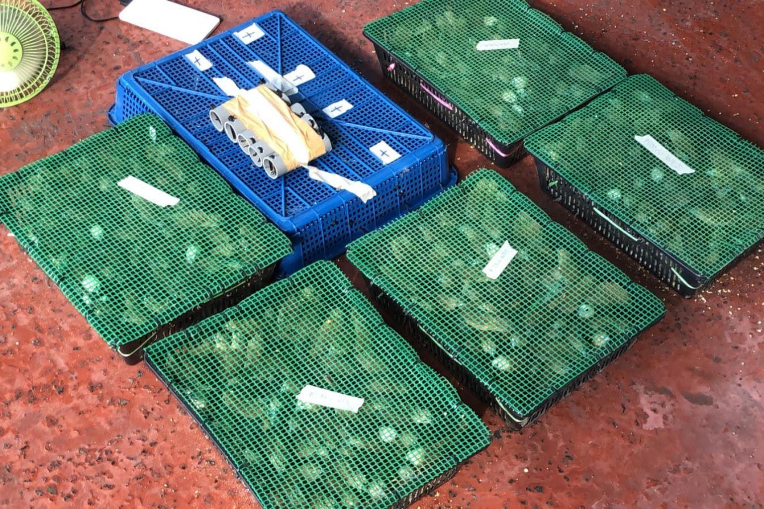 The 815 birds seized comprise five species: 38 white-rumped shamas, 10 oriental magpie-robins, 141 oriental white-eyes, as well as 626 scaly-breasted munias and white-headed munias.