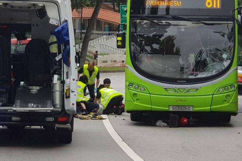 The police said they were alerted to the accident involving a bus and a personal mobility device at the junction of Yishun Avenue 9 and Yishun Street 21 at 11.21am.