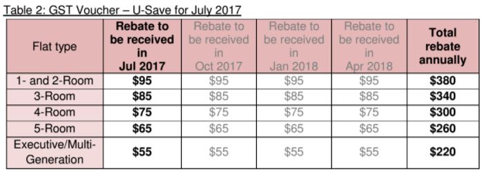 Distributed every quarter, the GST voucher - U-Save rebate is one of the three components under the Government's permanent GST voucher scheme.