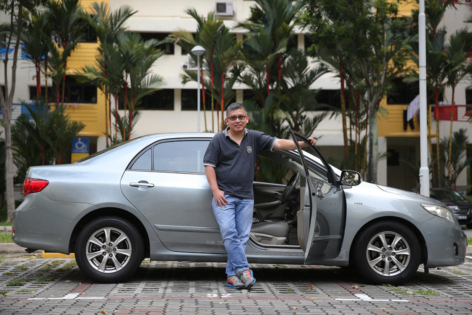 The Straits Times senior correspondent Toh Yong Chuan standing next to a Toyota Corolla which he rented during his driving stint as an Uber and GrabCar driver in November 2015.