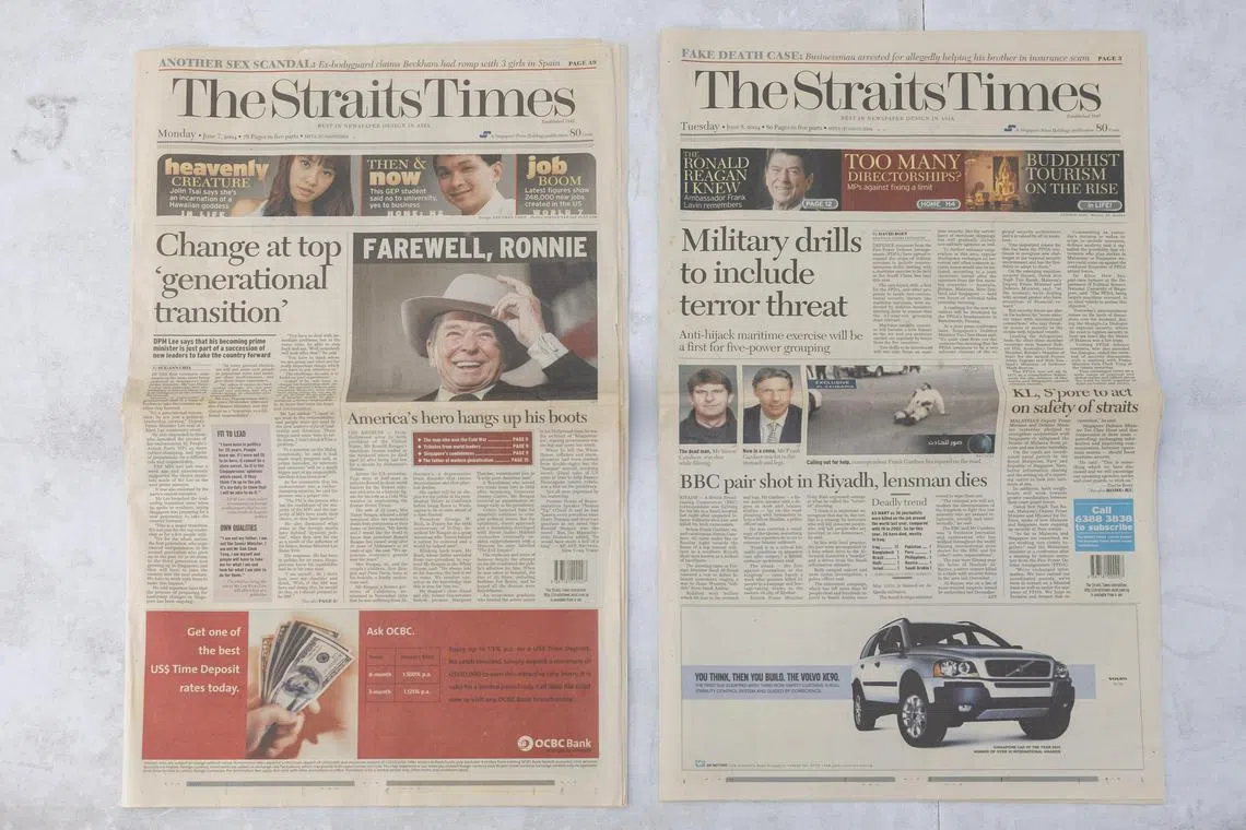 The June 7 and 8, 2004, editions of The Straits Times that Mr Cheah Kok Keong saved. He says newspapers connect people to the historical events that coincided with their birth dates and make for unique gifts.