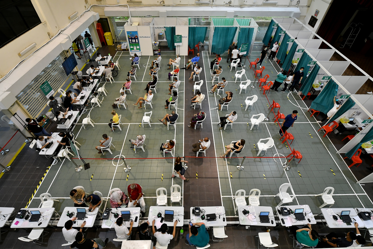 People at the Covid-19 vaccination site at Hong Kah North Community Club in March.