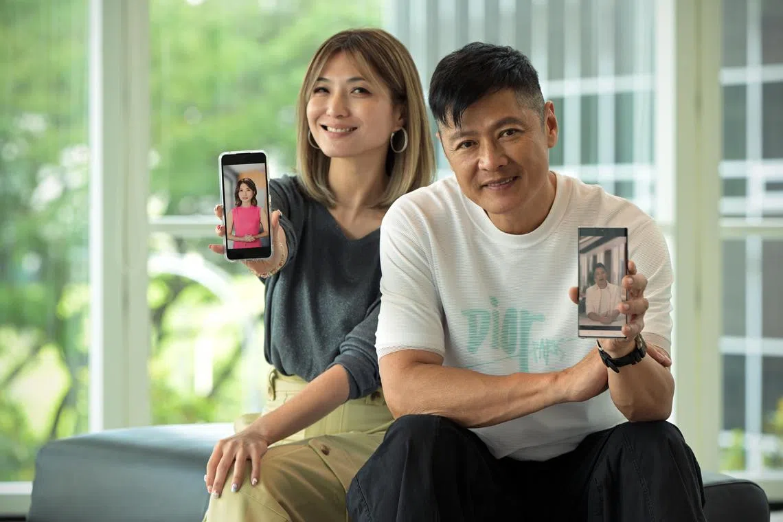 Local celebrities Vivian Lai and Li Nanxing with their AI avatars.
