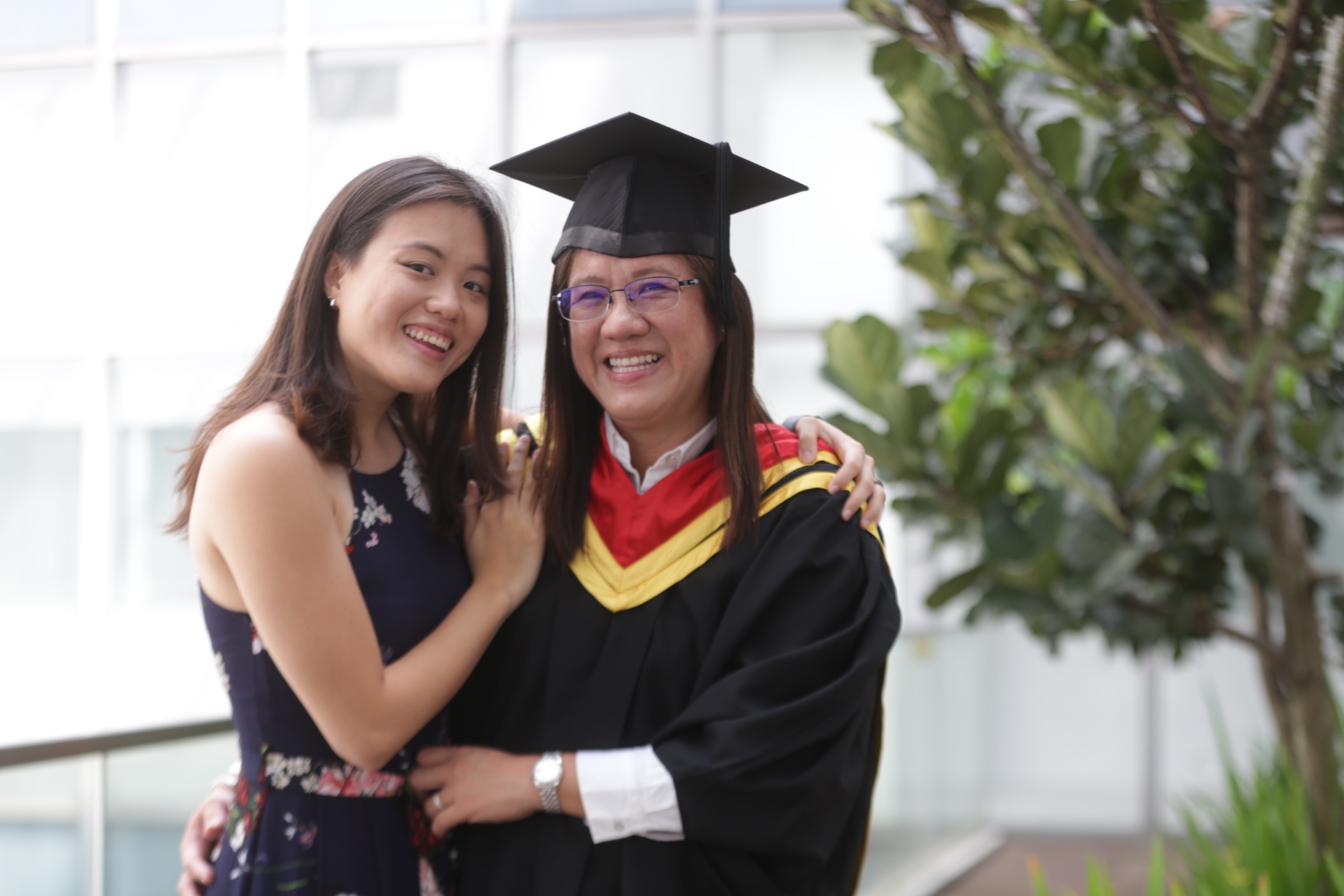 Jaslyn Teo (right) and her daughter Jenine Koh at the SUSS Graduation Ceremony.