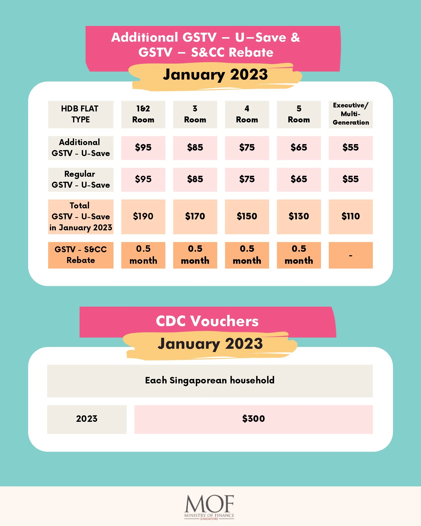 Eligible Housing Board households will receive an additional GST Voucher – U-Save of up to $95 to offset utility bills, on top of the regular U-Save rebate, in January 2023.