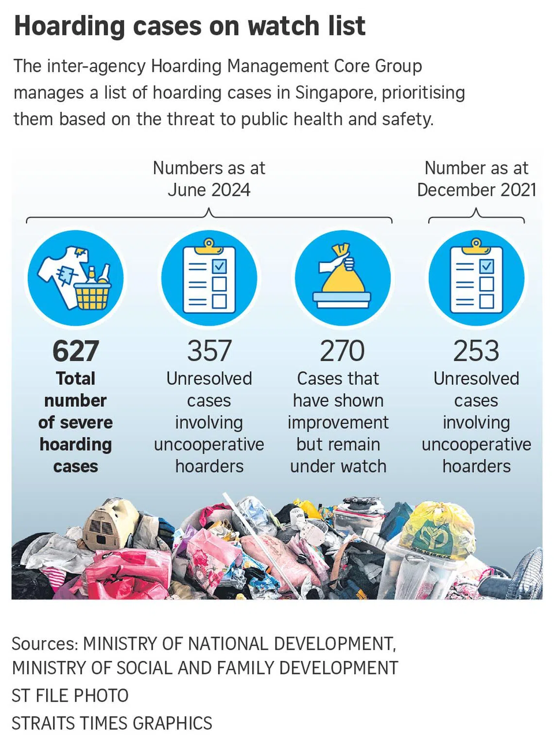 There are 627 severe hoarding cases that have been put on a government watch list, monitored by the inter-agency Hoarding Management Core Group (HMCG).