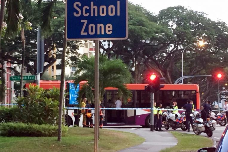 A police spokesman said that the incident happened at the bus stop near Sungei Seletar in the direction of Yishun at about 2pm.