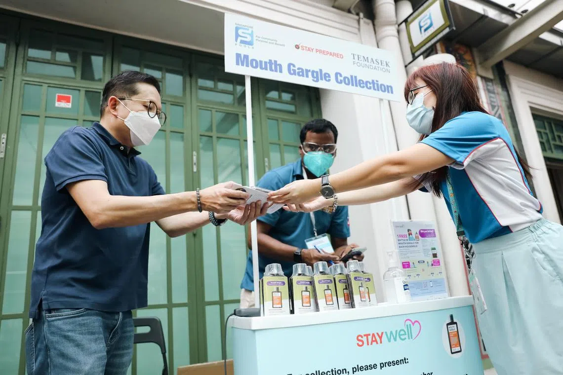 During the Covid-19 pandemic, Singapore Pools employees helped to distribute essentials at collection booths across 25 Singapore Pools branches. PHOTO: SINGAPORE POOLS