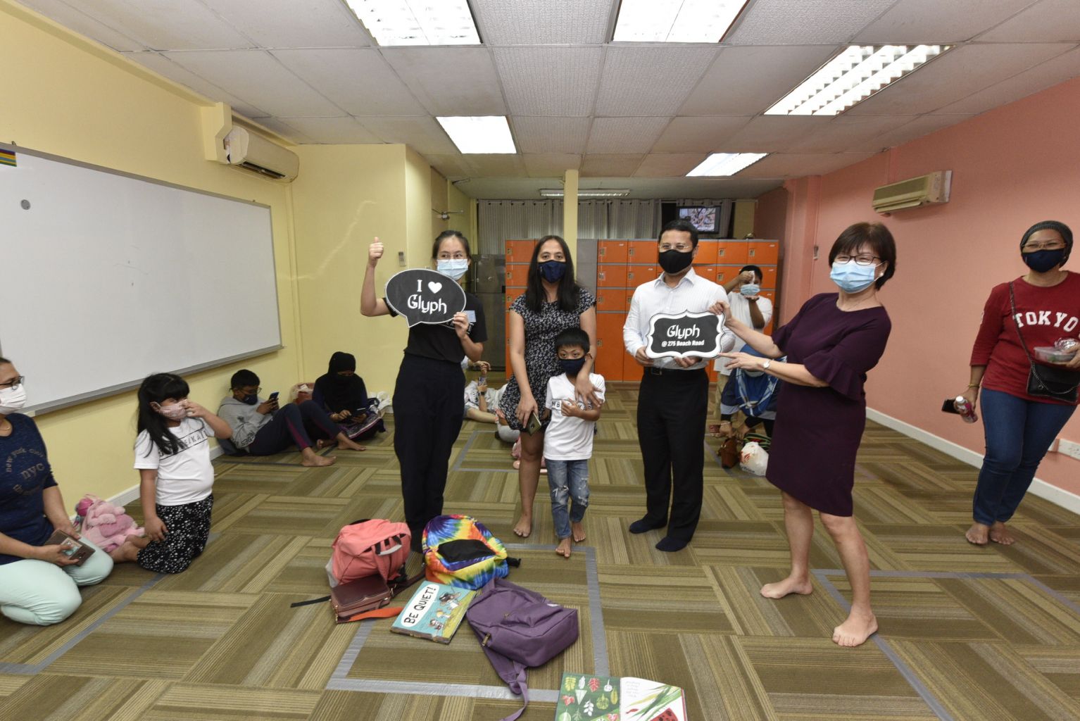 (From left) Ms Lim Si Hui, Madam Desiree Mercado with her son John Vince Mercado, Mr Desmond Lee and Mayor Denise Phua at Glyph's new centre in Beach Road, on April 9, 2021.
