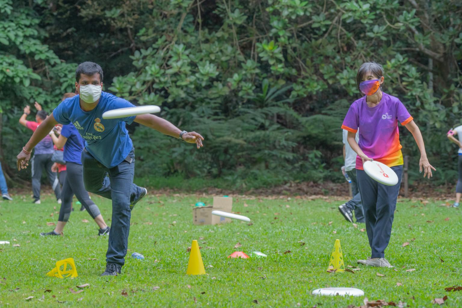 Migrant workers, sports volunteers and Bukit Batok residents enjoy an afternoon out at Bukit Batok Nature Park on Oct 30, 2020.
