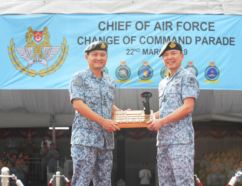 During the ceremony at Paya Lebar Air Base, BG Khong received the Air Force command symbol from the outgoing Chief of Air Force, Major-General Mervyn Tan Wei Ming, the Ministry of Defence (Mindef) said in a statement.