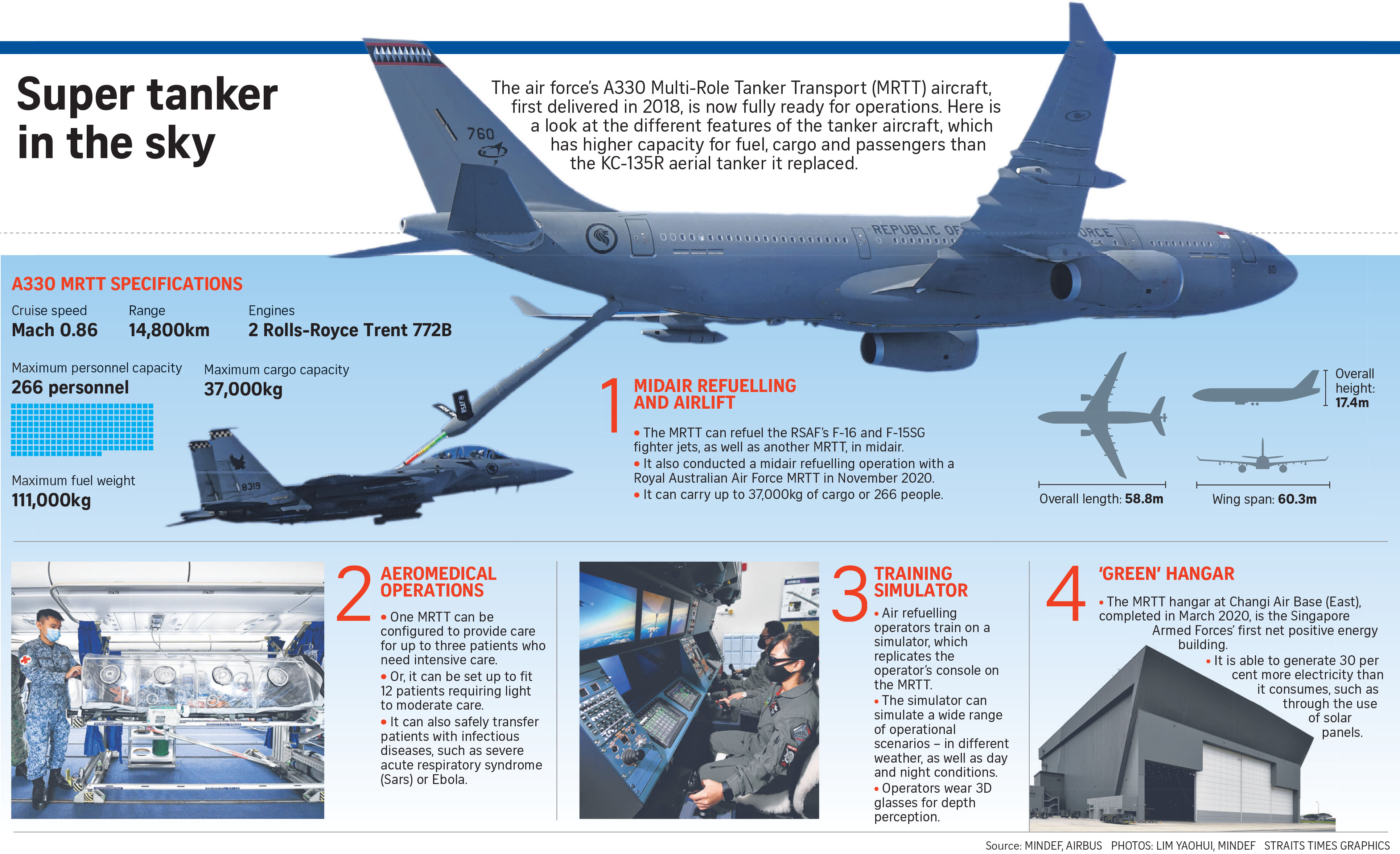 The Republic of Singapore Air Force's (RSAF) next-generation A330 Multi-Role Tanker Transport (MRTT) aircraft is now fully operational and can carry out missions such as transporting servicemen across large distances and extending the range of fighter jets.