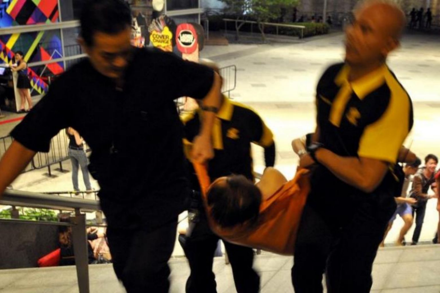 A drunk clubber being carried away on a stretcher after collapsing.