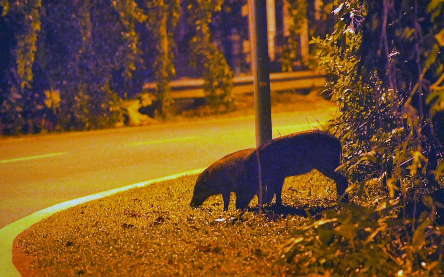 Wild boars searching for food by the side of Old Upper Thomson Road at night on Jan 16, 2012.