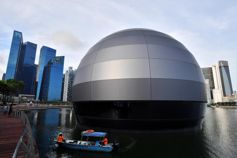 Is the mysterious orb-like structure sitting in the waters off Marina Bay Sands (MBS) the third Apple store in Singapore?