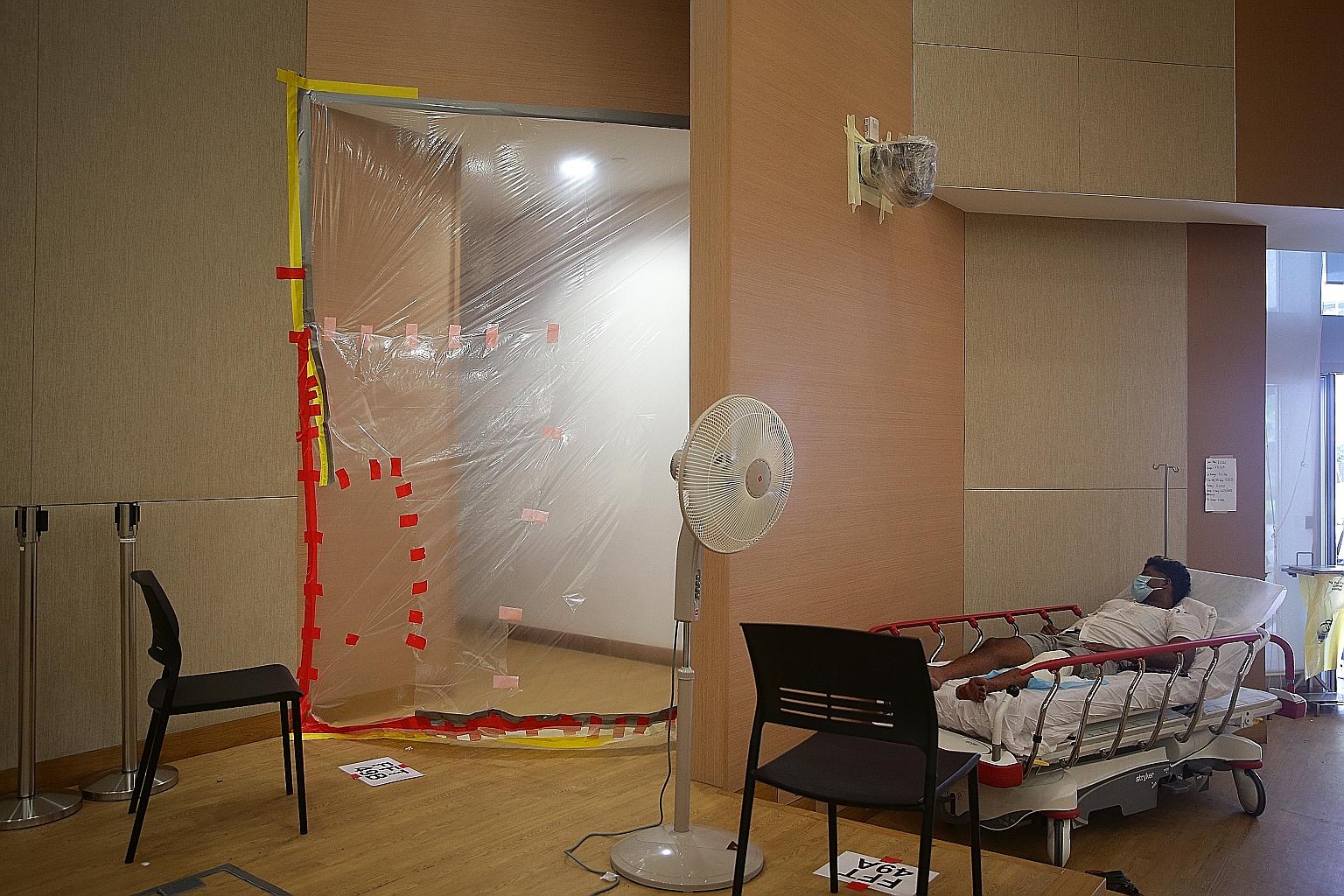"We had to move fast to repurpose various areas, sometimes overnight, to meet the increasing load. Our fever tent at the emergency department has undergone two additional extensions to create a capacity of 18 trolley beds and 96 chairs," said Mr Foo Hee Jug, the chief executive officer of NTFGH.