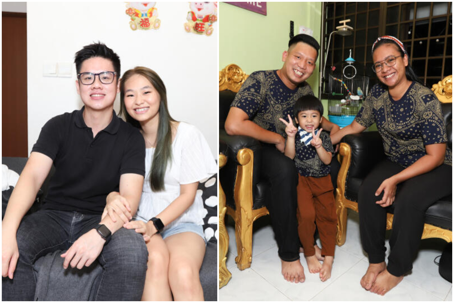 Mr Toh Jin Ann and his girlfriend Jaslin Chong (both left) and Mr Muhammad Azhar and his wife, Madam Nurhayati Zulfikri, with their son, Yafizhan Amsyar.