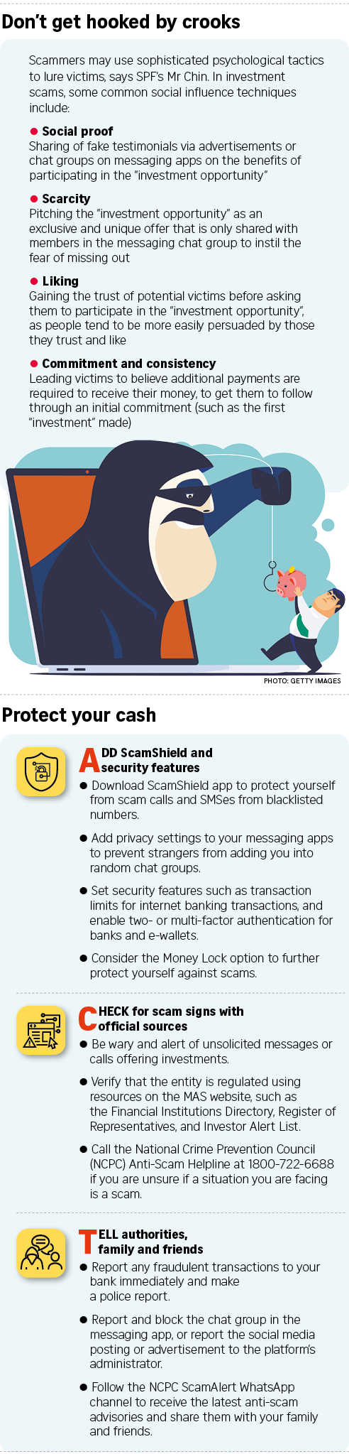 Why do people fall prey? “Scammers deploy a combination of social influence techniques that prey on human vulnerabilities in their communications to deceive potential victims,” says Mr Jeffrey Chin, deputy director of the Scam Public Education Office, Operations Department, Singapore Police Force (SPF).