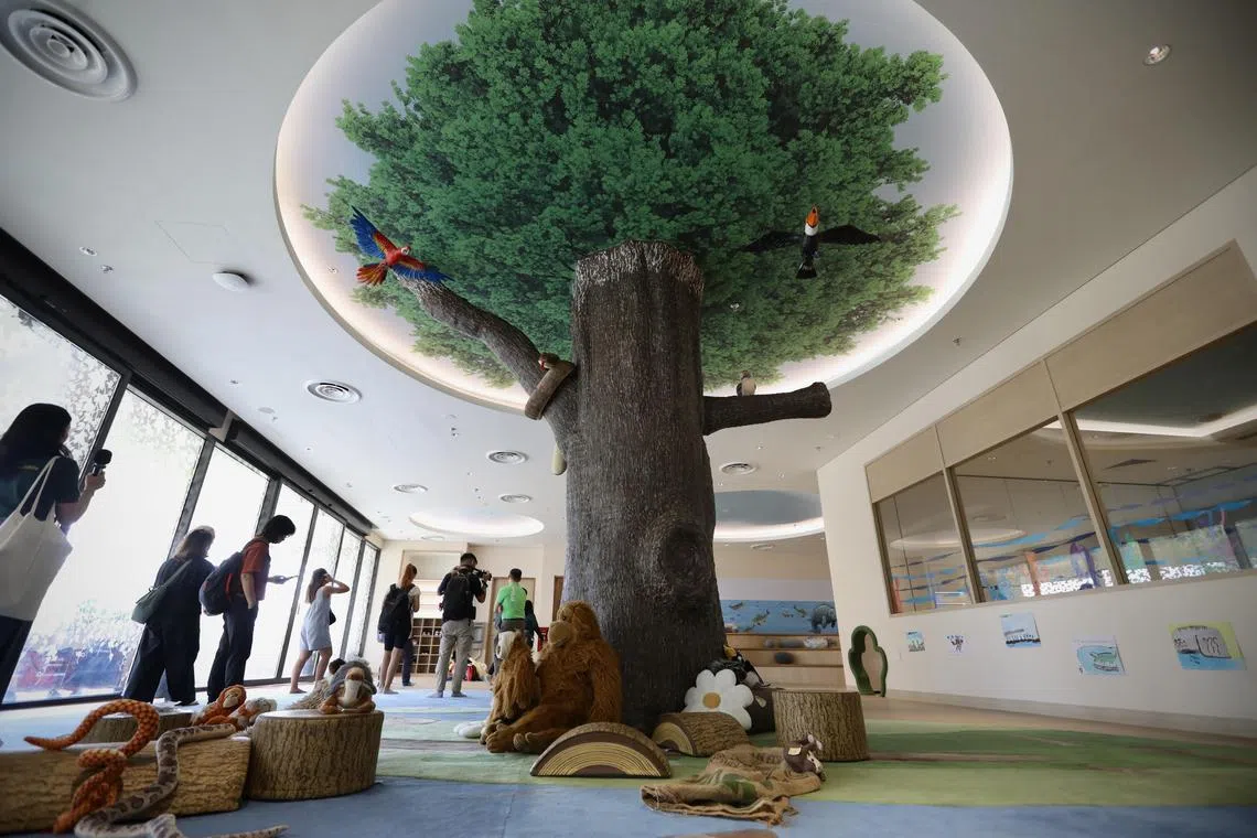 Set up by Mandai Wildlife Group together with pre-school operator NTUC First Campus, ZooSchool’s 1,300 sq m campus in Mandai features indoor spaces modelled after rainforest, freshwater and savannah habitats. There is also a multi-level outdoor playground.