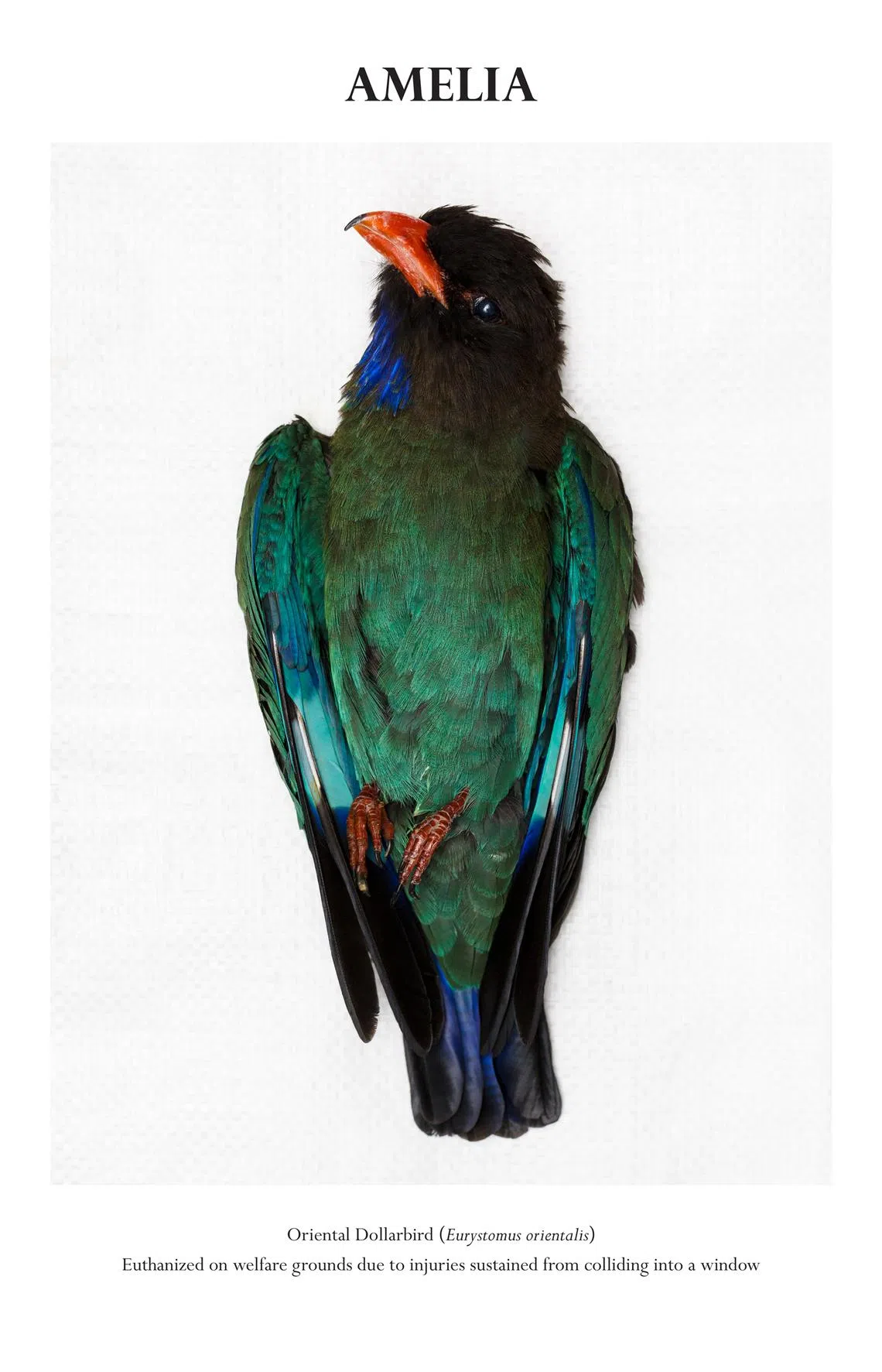 This Oriental dollarbirdgot its name from the white spot on the underside of each wing, resembling silver coins. It is commonly spotted in Singapore in mangroves, parks and gardens. “This was the only animal in the series that I had to watch die,” she said of this bird Amelia. “She was rescued alive but with a broken neck, and thus she needed to be put down to relieve her suffering. I was assisting the vet during the euthanasia process and after watching the life in her eyes fade to blankness, I realised just how different it is to work with the dead and the dying. I would consider this one of my most emotional shoots.”