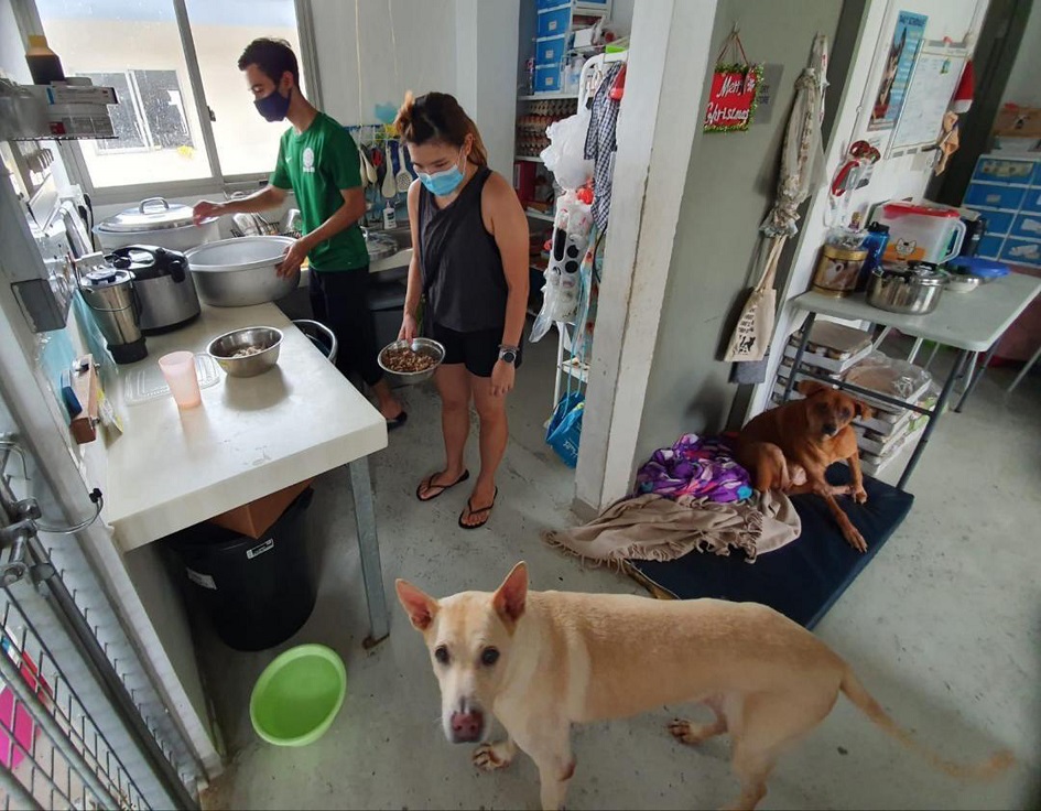 Volunteers at work at Oasis Second Chance Animal Shelter, one of the groups at purpose-built facility The Animal Lodge in Sungei Tengah. Social distancing measures and circuit breaker regulations have prevented animal welfare groups from holding regular fund-raisers and limited the number of volunteers who can care for the animals under their charge.