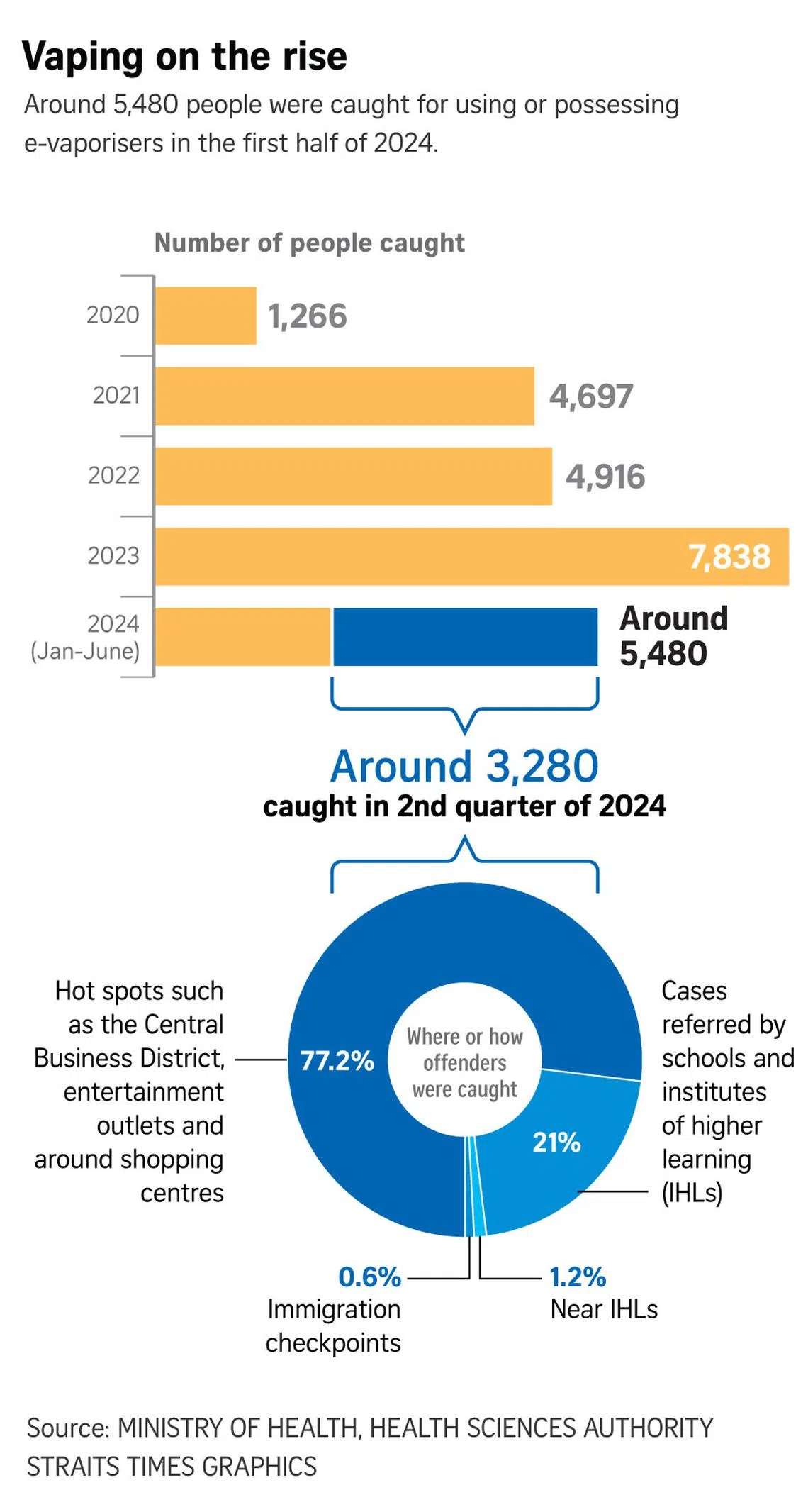 In a joint statement on Aug 1, MOH and HSA said the rise is a result of stepped-up enforcement to prevent vaping from being entrenched in the population.