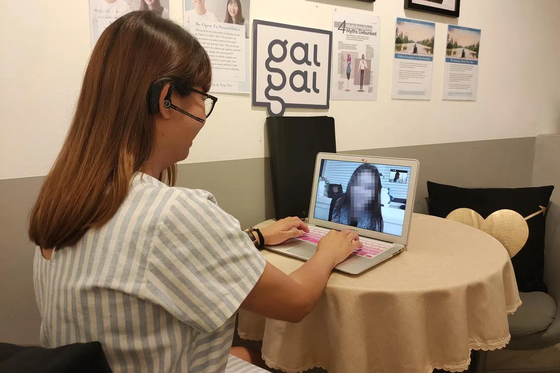 A relationship manager from dating agency GaiGai advising a client over a video call.