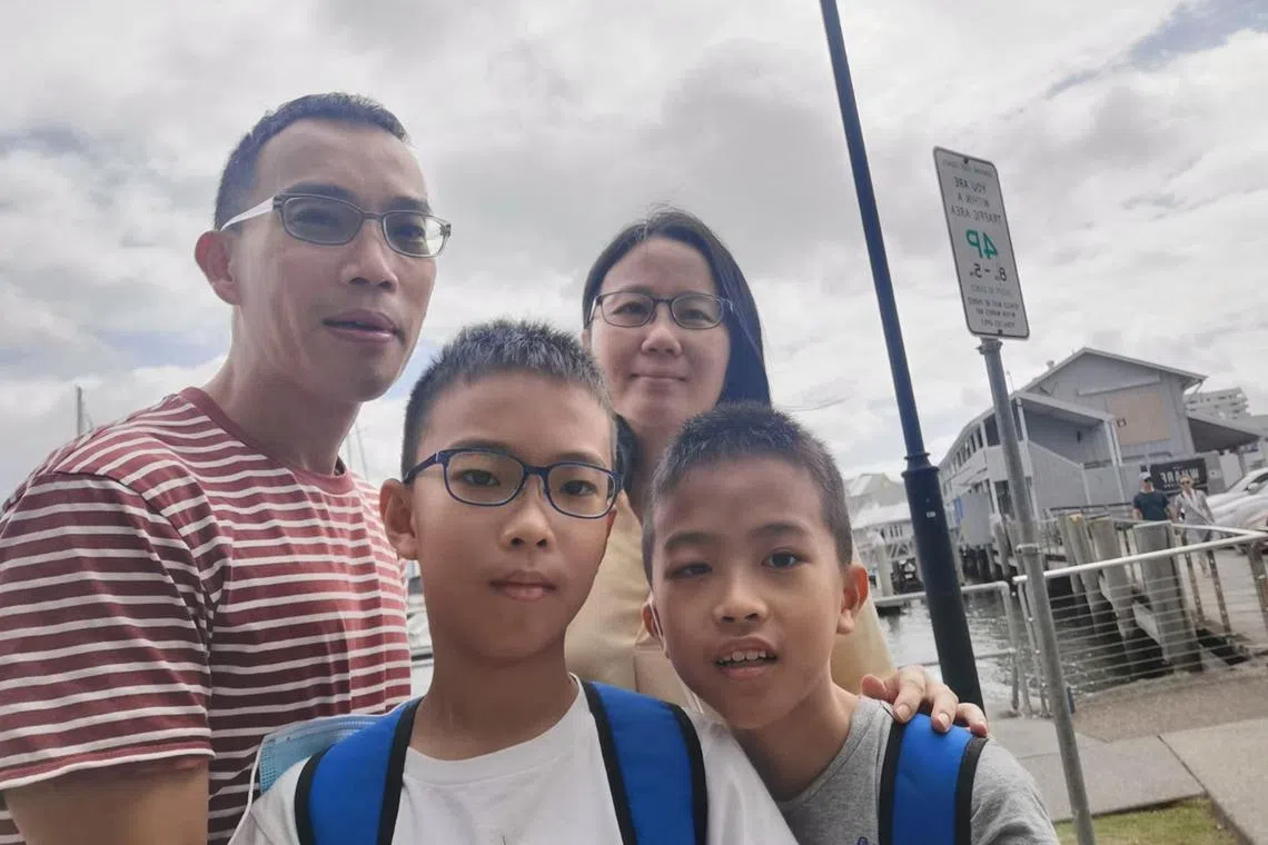 Mr Seah Wei Chuan and Ms Ding Ying Yian, who got hitched in 2011, with their two sons at a recent holiday.
