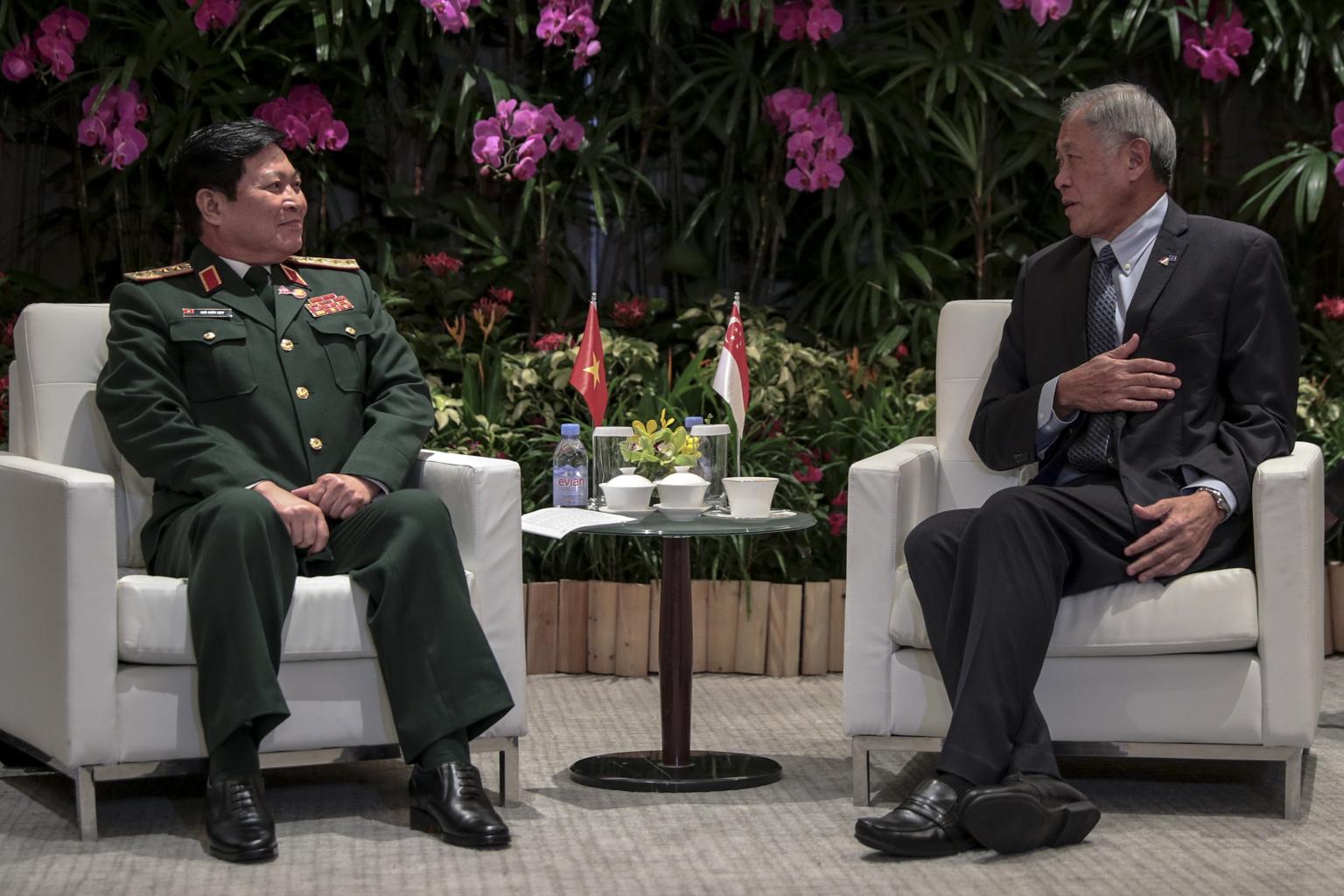 Defence Minister Ng Eng Hen meets Vietnamese Minister of National Defence Ngo Xuan Lich at the Shangri-La Hotel in Singapore on Oct 18, 2018, ahead of the 12th Asean Defence Ministers' Meeting.