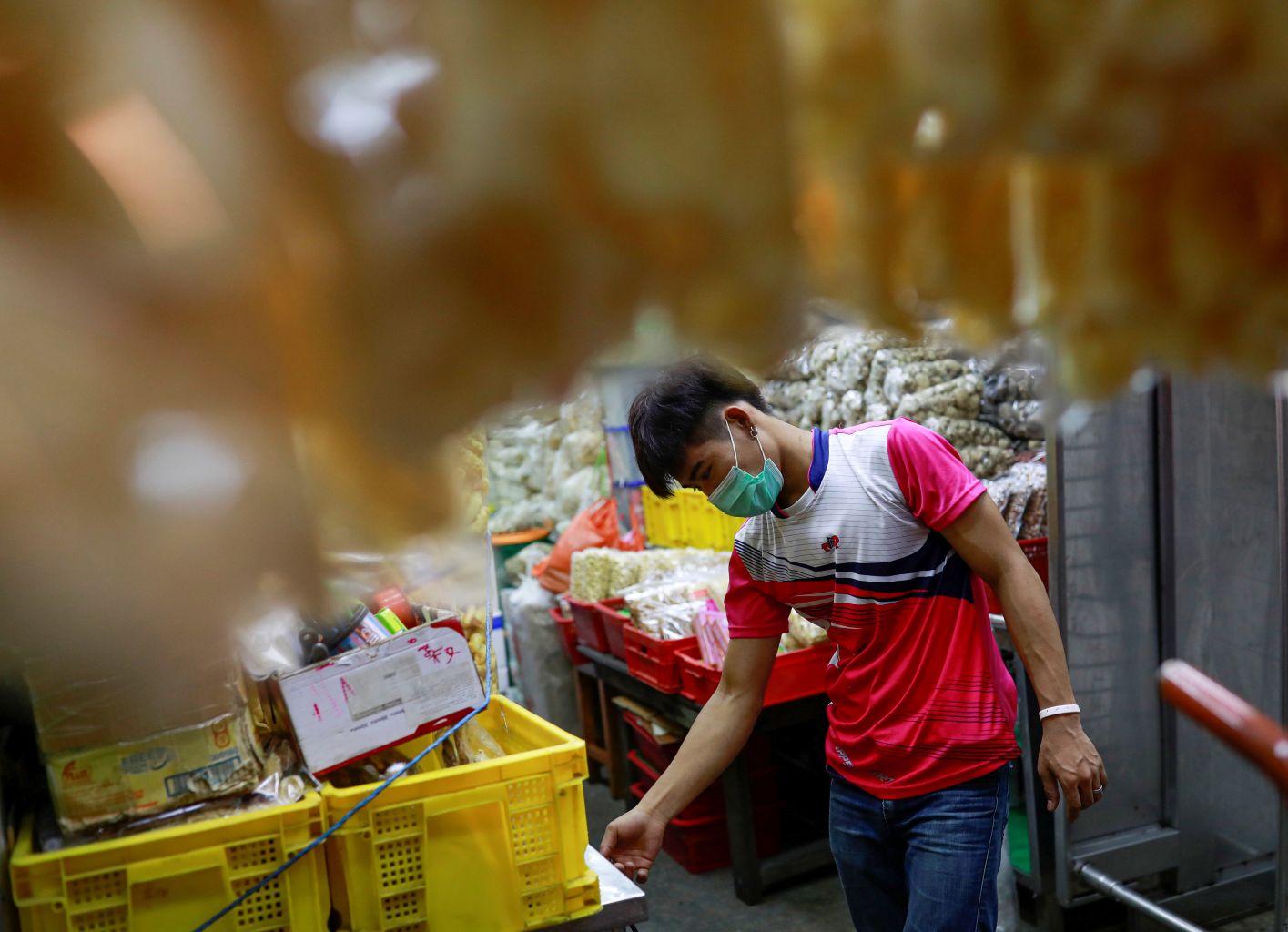 A migrant worker from Myanmar works at a market at Bangkok, Thailand, March 20, 2020.