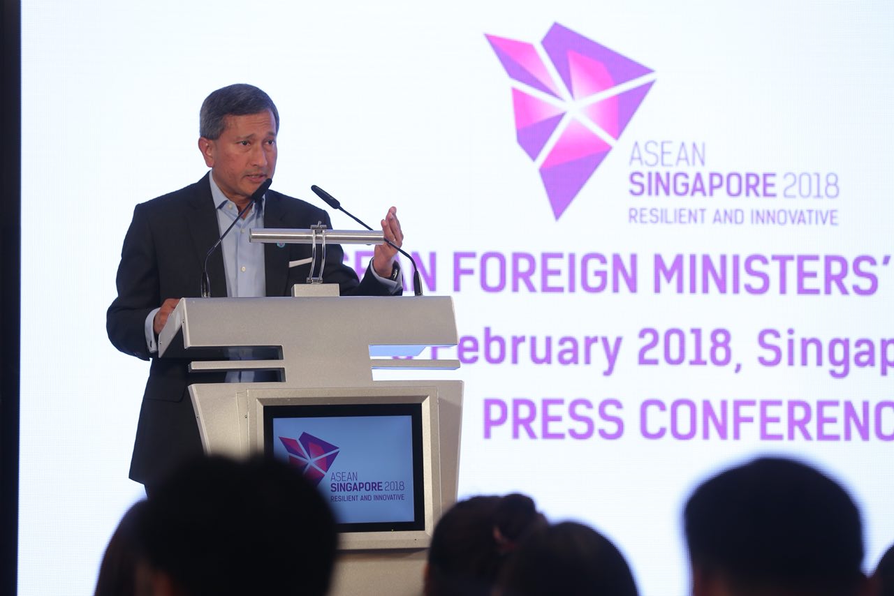 Singapore's Foreign Minister Vivian Balakrishnan speaking at the Asean Foreign Ministers' Retreat on Feb 6, 2018.