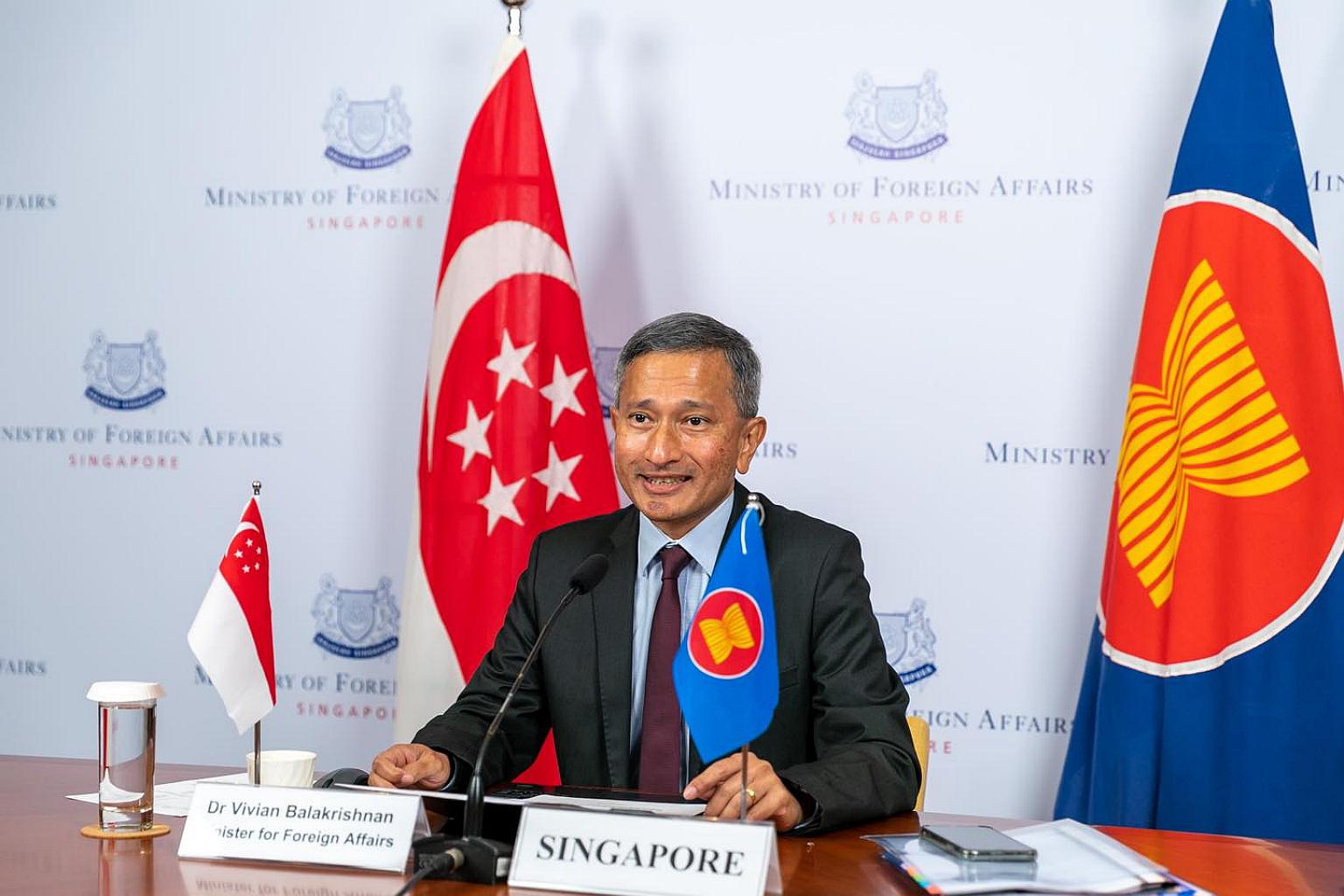 SINGAPORE - Minister for Foreign Affairs Vivian Balakrishnan discussed possible future cooperation as part of the post-pandemic recovery with his counterparts from Asean and the United Kingdom during a video-conference dialogue on Thursday (April 8).