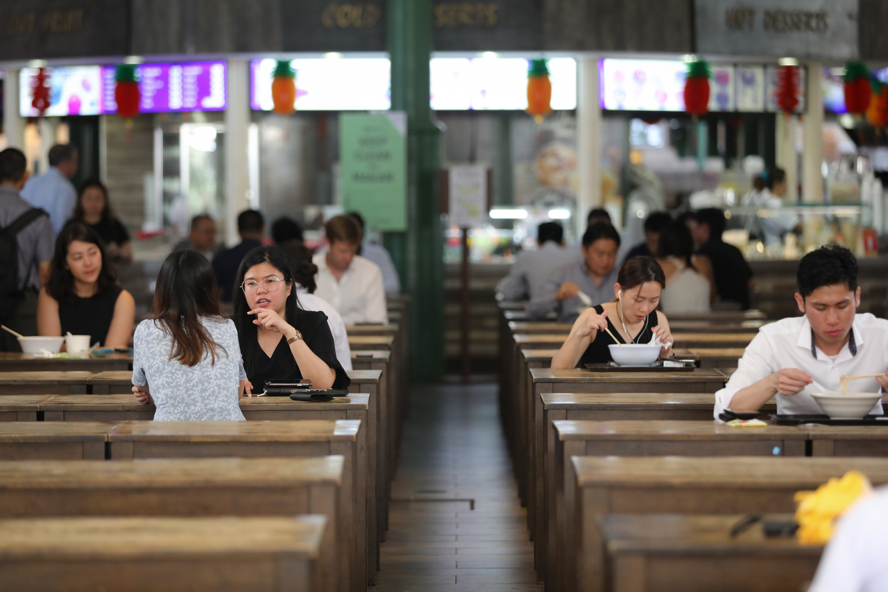A: Employers are encouraged to stagger timings of lunch and other breaks. At eateries, workers should continue to follow safety measures, such as maintaining social distancing and keeping their masks on when they are not eating or drinking.