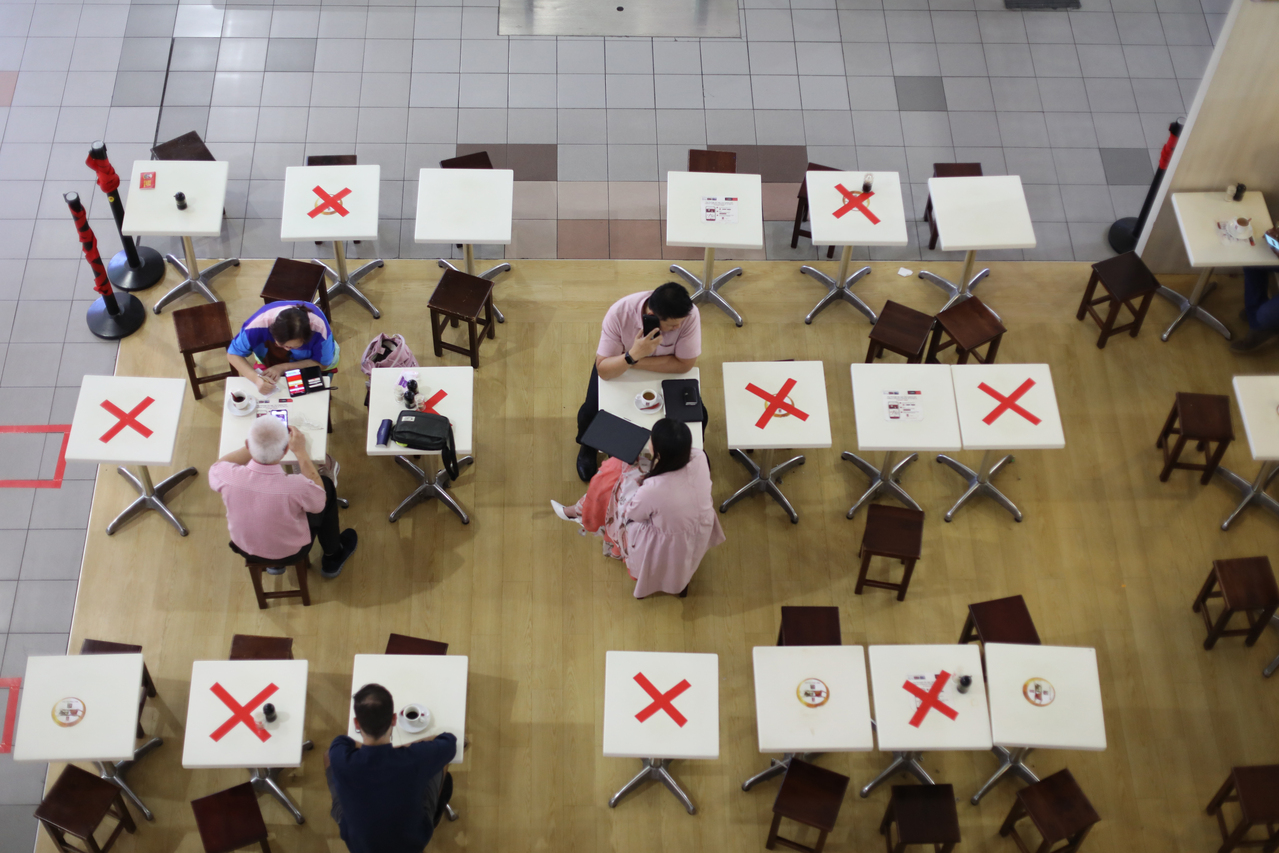 The cap for dining in F&B outlets may be raised to five people per table in mid-July, if the situation improves.