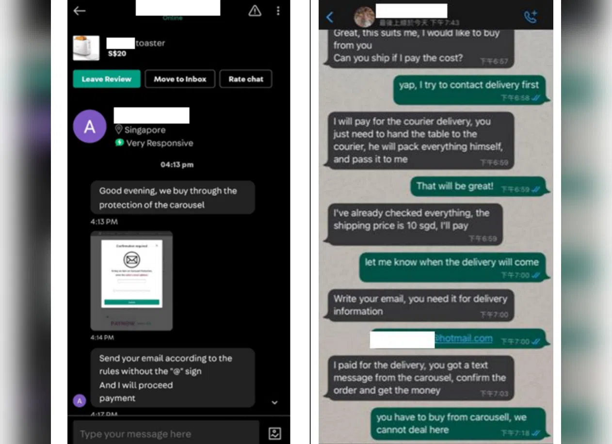 They added that Carousell does not ask for payment, order confirmation or card details via external sites or e-mail and stressed the need to be cautious when dealing with buyers who asked for personal information.