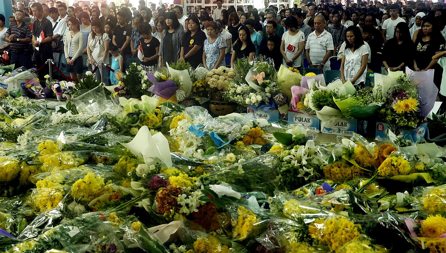 In Ang Mo Kio GRC where Prime Minister Lee Hsien Loong is an MP, more than 1,400 people gathered to watch a live feed of the funeral service and to mourn together.