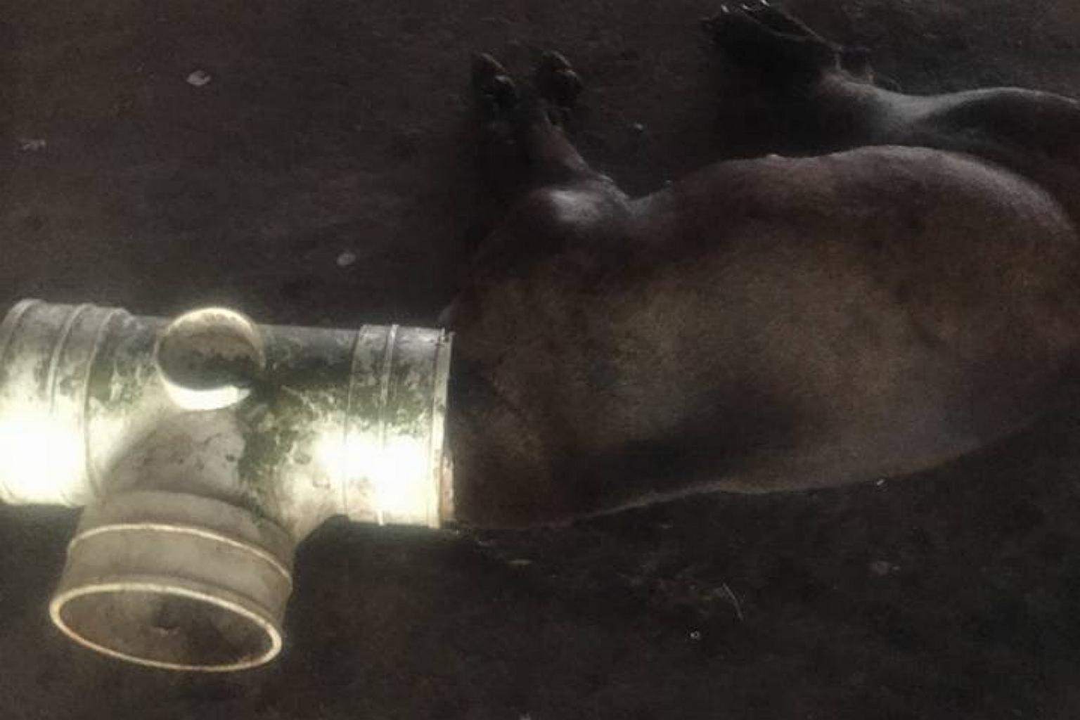 The dog was found in a canal with its head shoved inside a T-shaped pipe on Oct 19, 2017.
