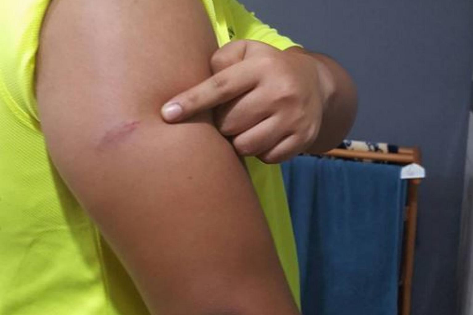 Mr Rushdan Eilyaas showing the bite he allegedly got from a dog owned by a GrabHitch driver.