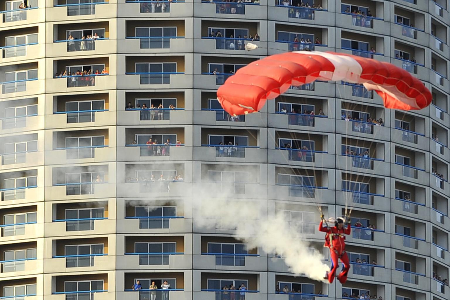But this year, the team of nine Red Lions parachutists are set to wow the crowds with their classic skydive manoeuvre, starting with a freefall from over 3km.