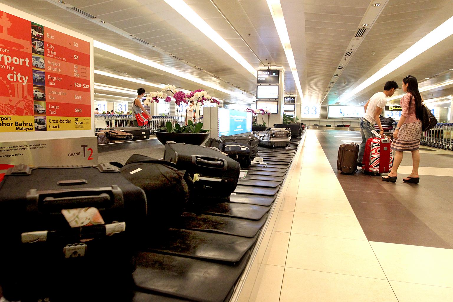 Passengers collecting their luggage at Changi Airport Terminal 2.