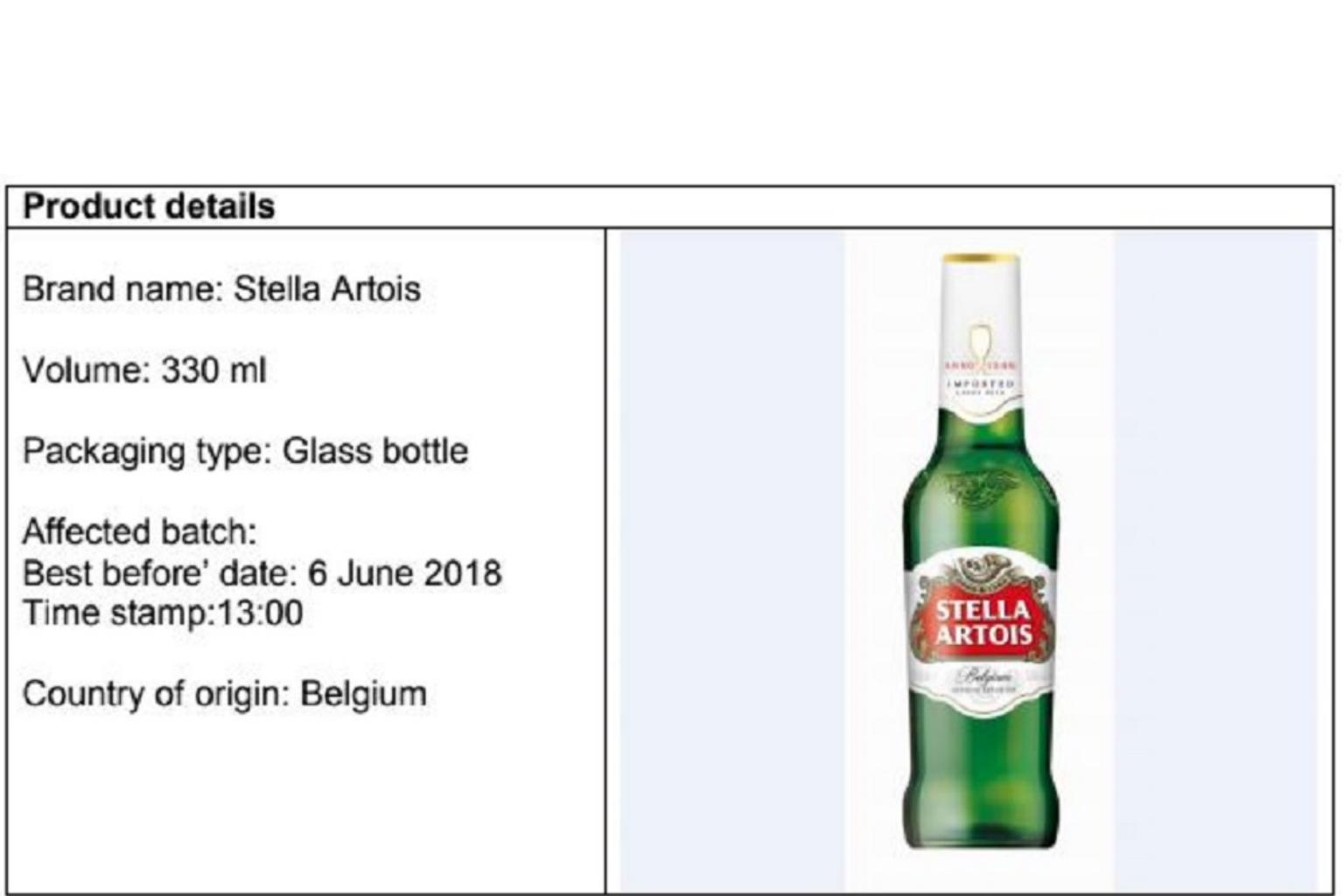 Each affected 330ml bottle has a best-before date of June 6, 2018, and a time stamp of 13:00. The batch was made in Belgium.