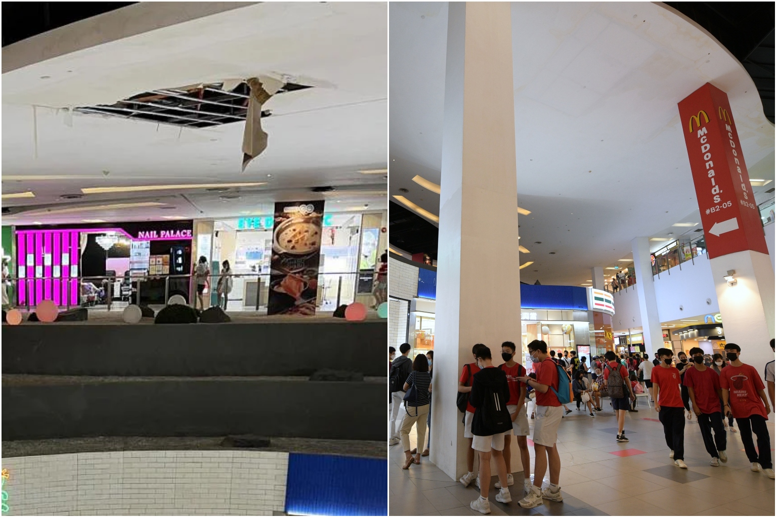 "Our engineer observed that part of a ceiling board had fallen from (the underside of) Level 1 to Basement 2. Water leakage from choked plumbing of a toilet in one of the shops at Level 1 of the mall had caused the ceiling board to become damp and break," she said.