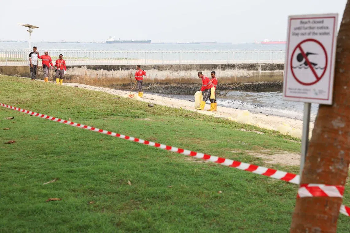 Beachfront in parts of East Coast Park closed amid oil spill; Sentosa beaches open but no swimming allowed