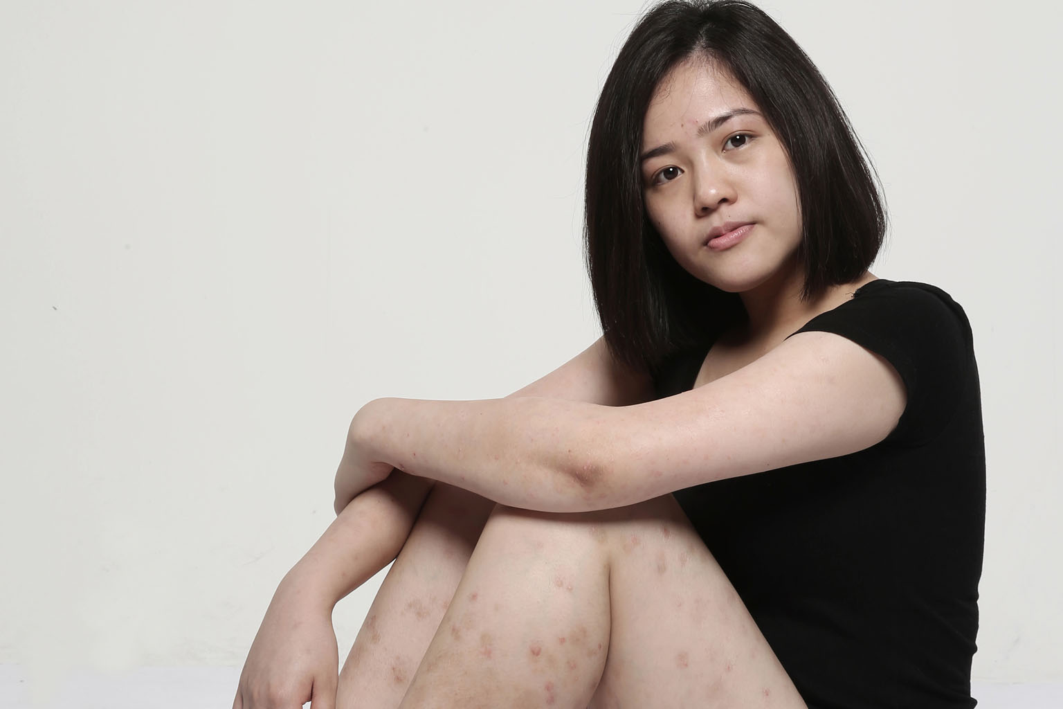 Ms Yvonne Chan has psoriasis, an incurable immune disorder that affects about 1 per cent of Singapore's population. The condition causes flaky and scaly skin, as well as red, inflamed patches that can cover the entire body. For Ms Chan, the red spots are all over her legs.