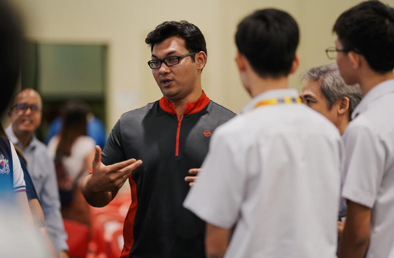 SMRT technician Luqman Nur Hakim Rosma speaking to participants during a National Engineers Day event on July 20, 2019.