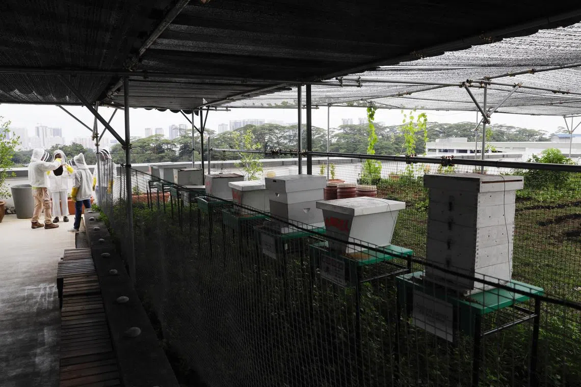 SUSS students and staff are unlikely to see swarms of bees flying around on campus as most of them are busy working in their hives.
