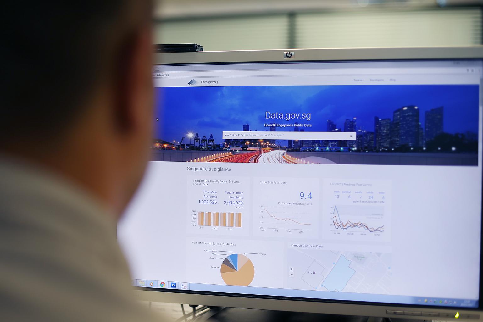 File photo showing a man looking at statistics on data.gov.sg. Cyber-security experts said Smart Nation projects will likely involve different levels of risks.